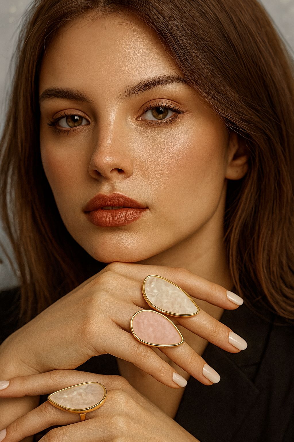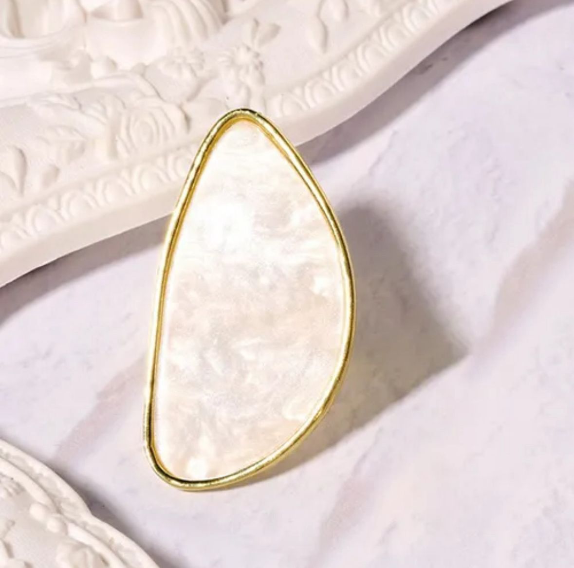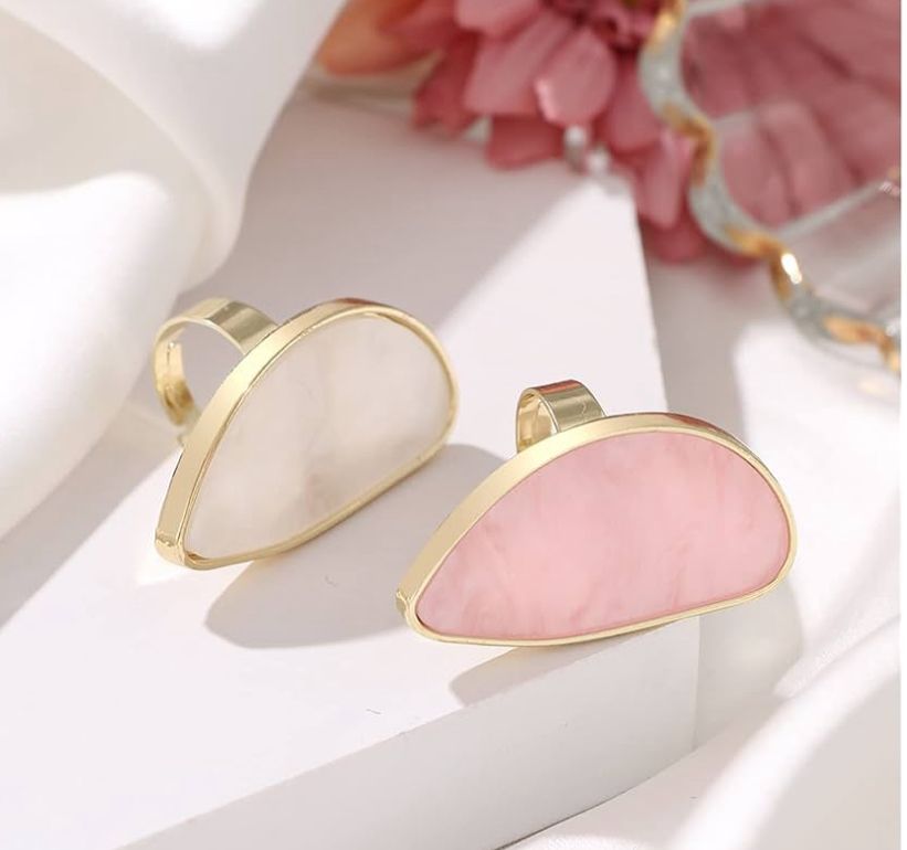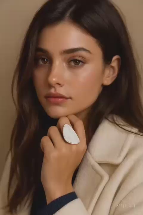 Anillo media luna acabado nacarado blanco maximalista acero inoxidable regalos mujer