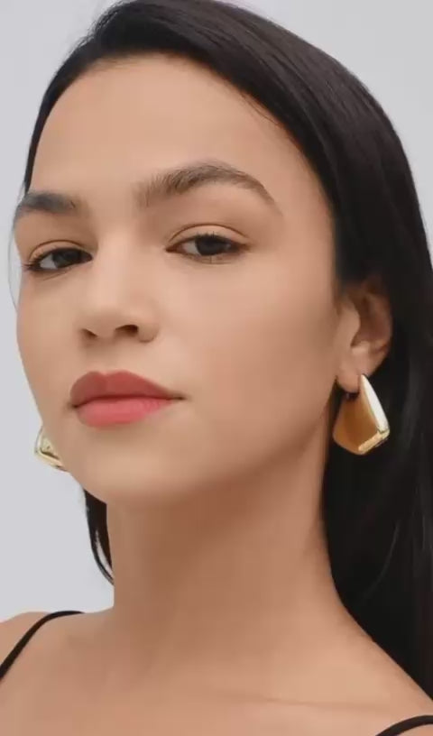 Arracadas chapa oro 18 k irregulares color dorado hoops aretes mujer