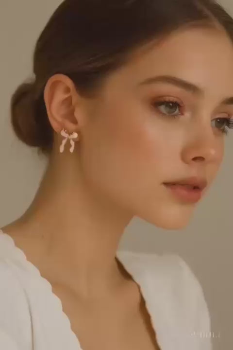 Aretes moño nacarado rosa suave acero inoxidable regalos mujer