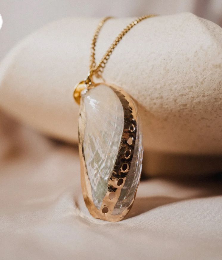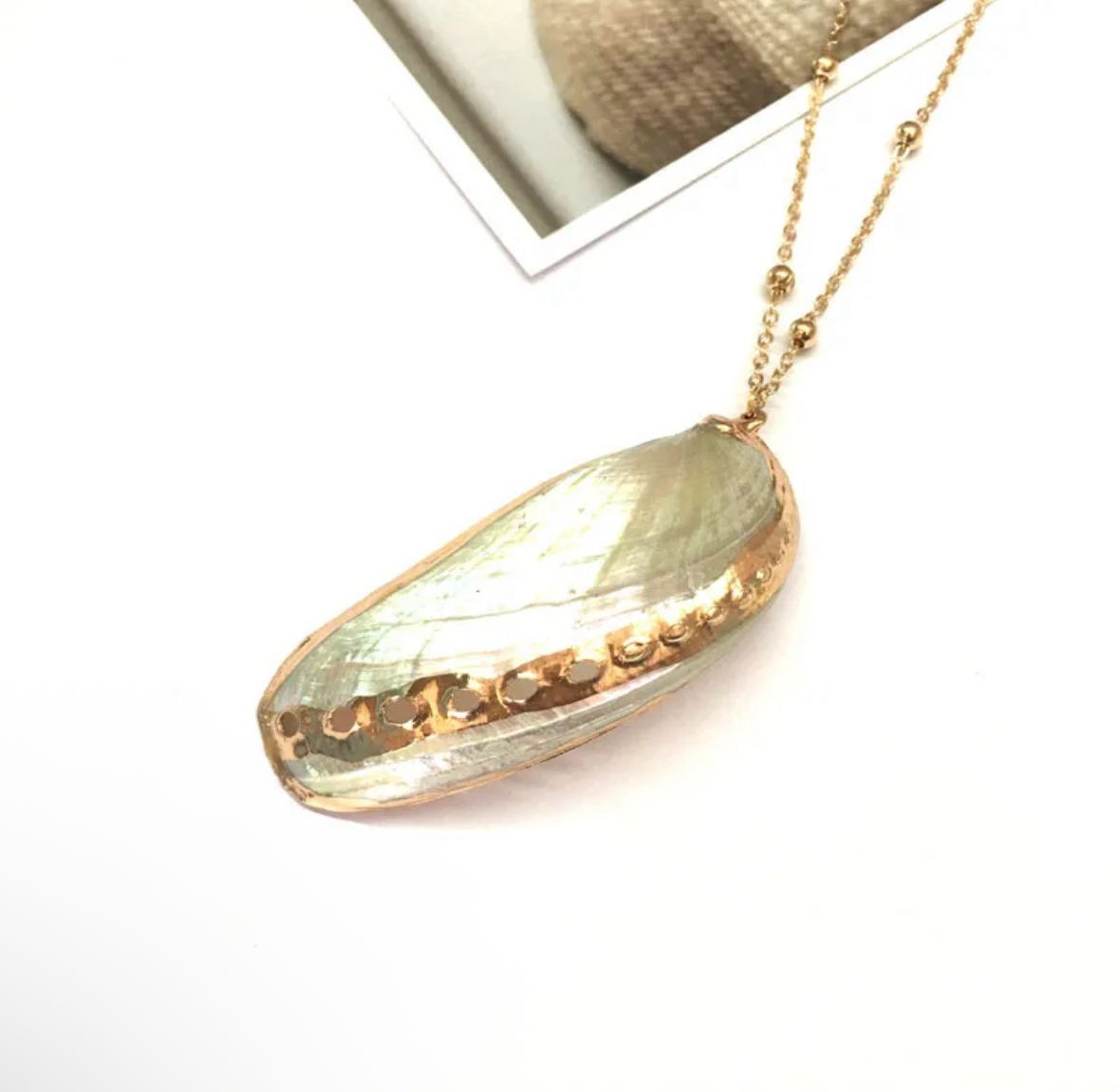 Collar concha grande natural grabada con chapa oro regalos mujer