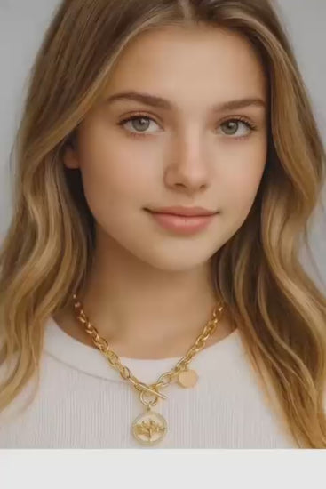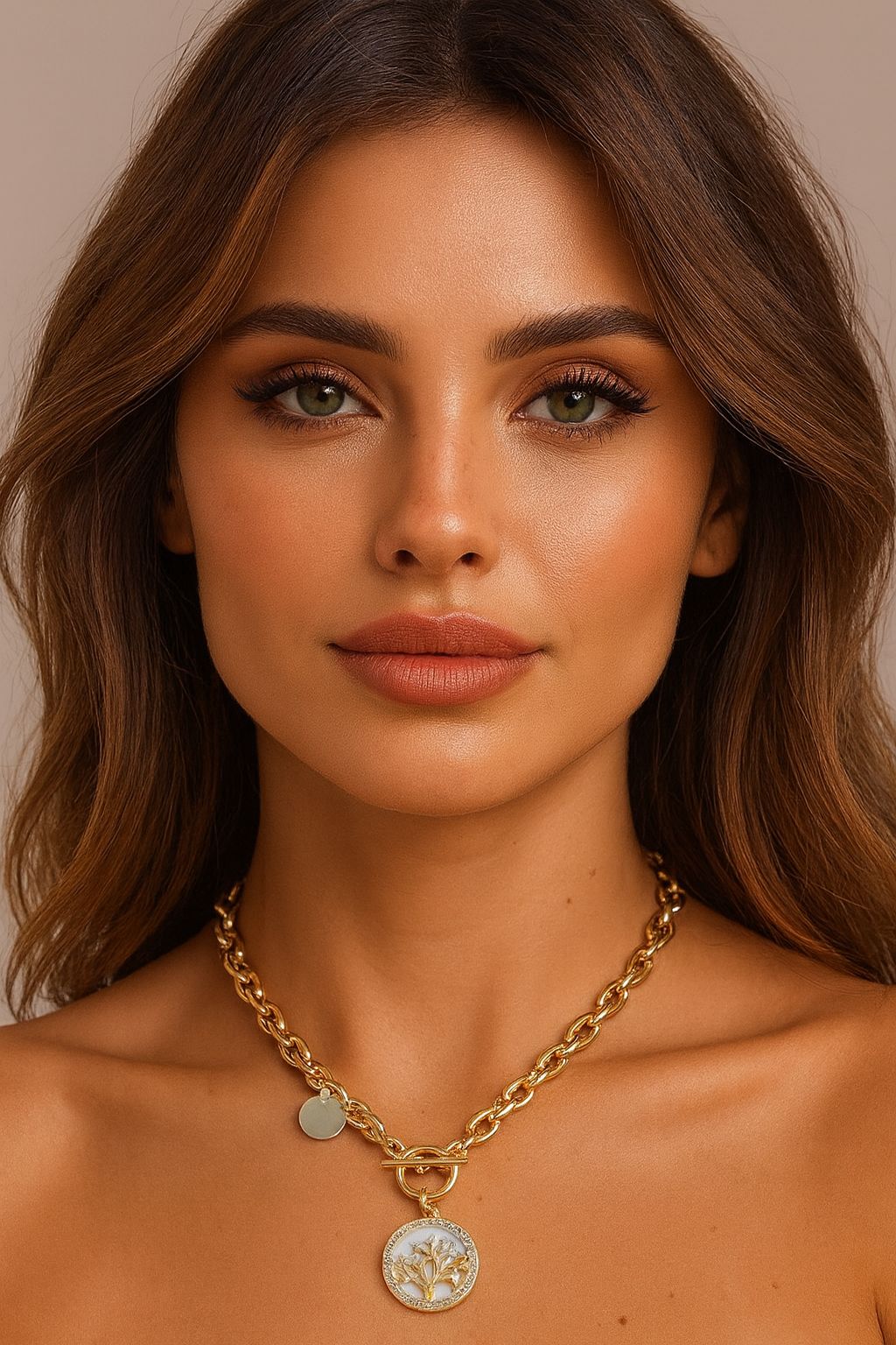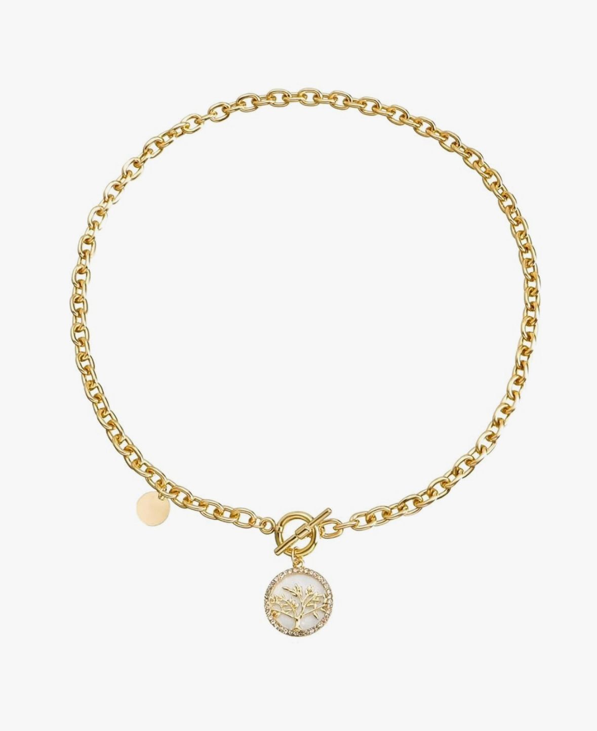 Collar dije arbol vida con circonia broche al frente marinero y dije circular, ideal para charms regalos mujer