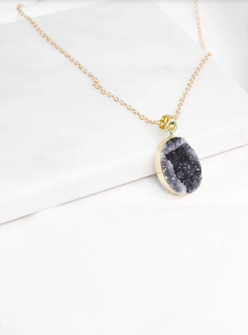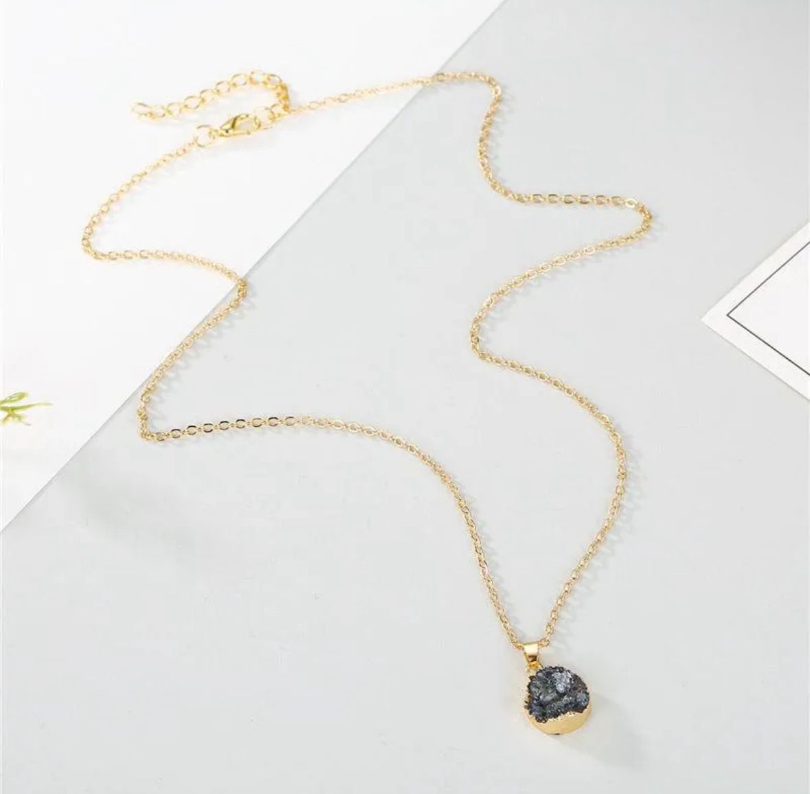Collar dije cristales negro chapa oro 18k regalos mujer