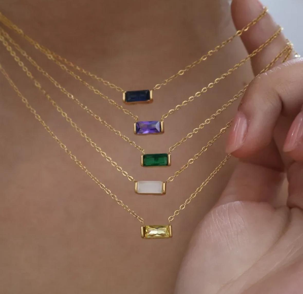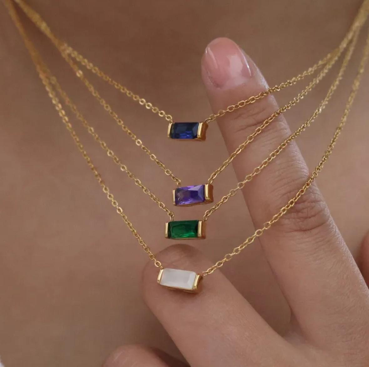 Collar con dije rectángulo color verde esmeralda regalos mujeres niñas