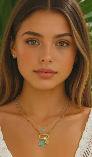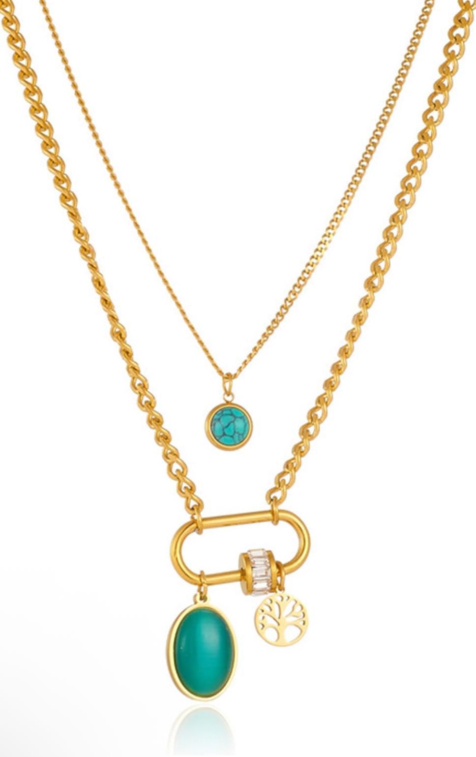 Collar doble layer dije piedra verde y circonia dos capas dorado