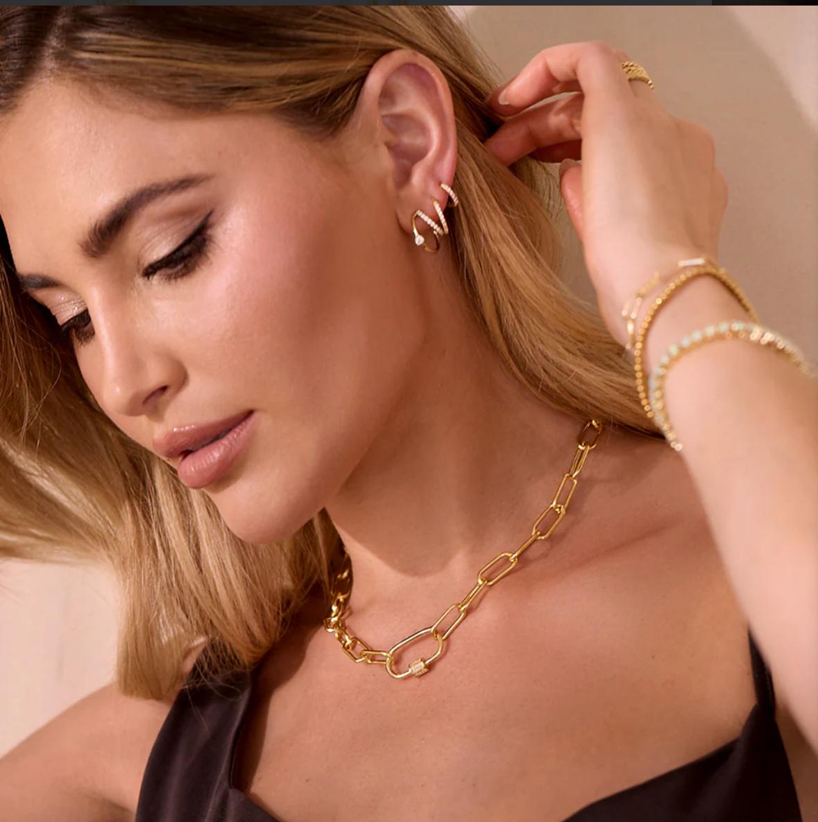 Collar de cadena con link al frente con circonia ideal para dijes charms regalos mujer niñas