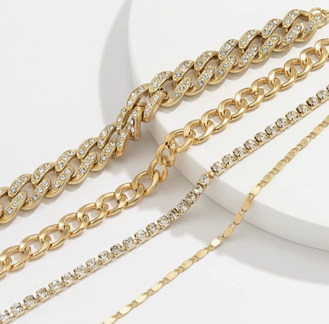 Juego de cuatro pulseras cadena incrustación diamante imitación regalos mujer brazaletes