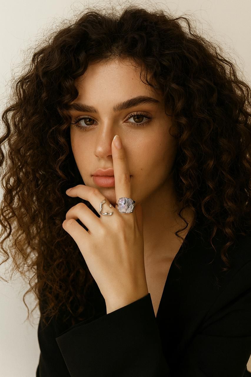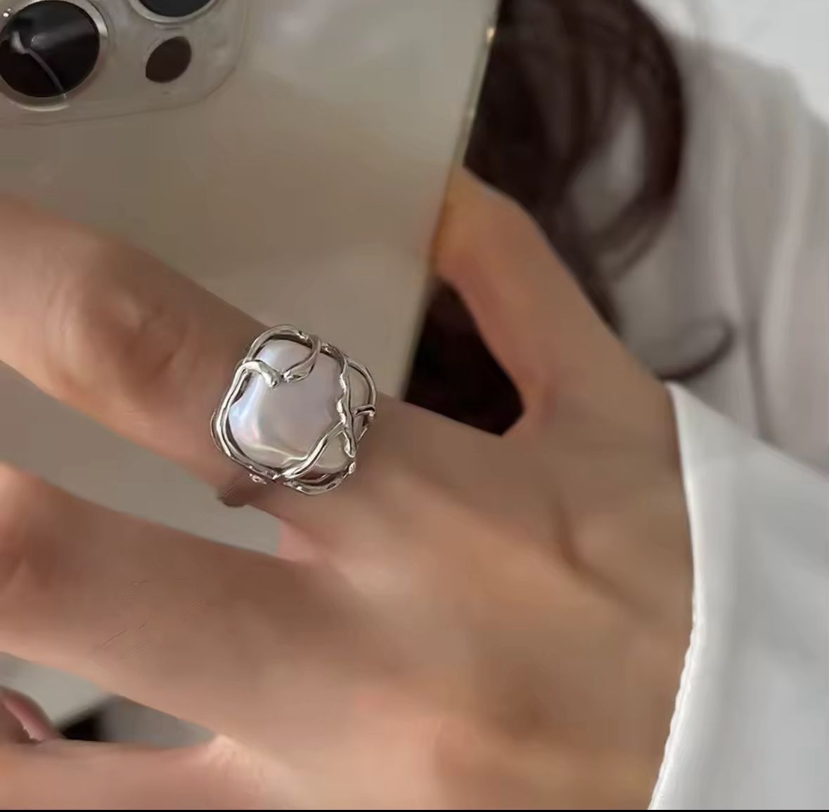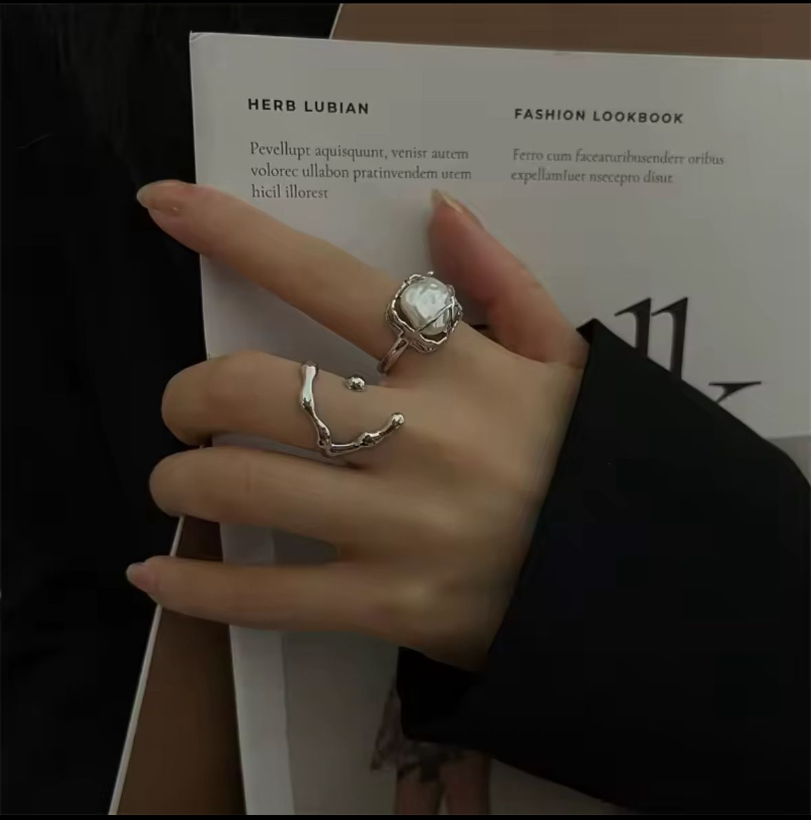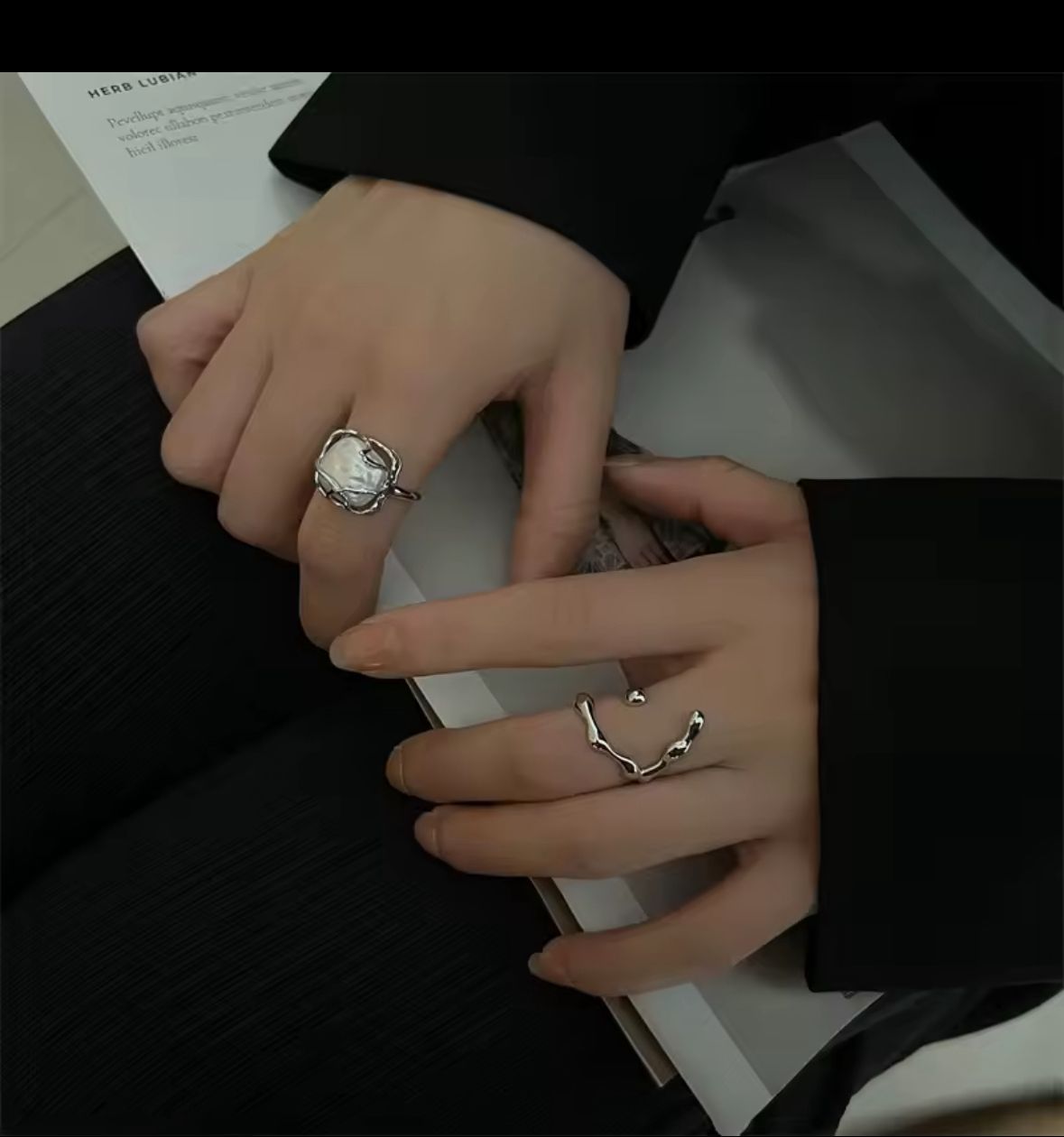 Juego anillos plateados piedra nacar autoajustables regalos mujer 2 piezas