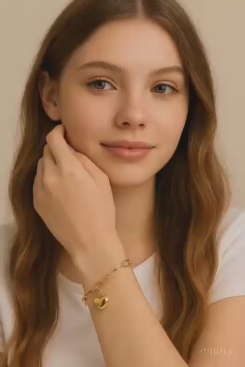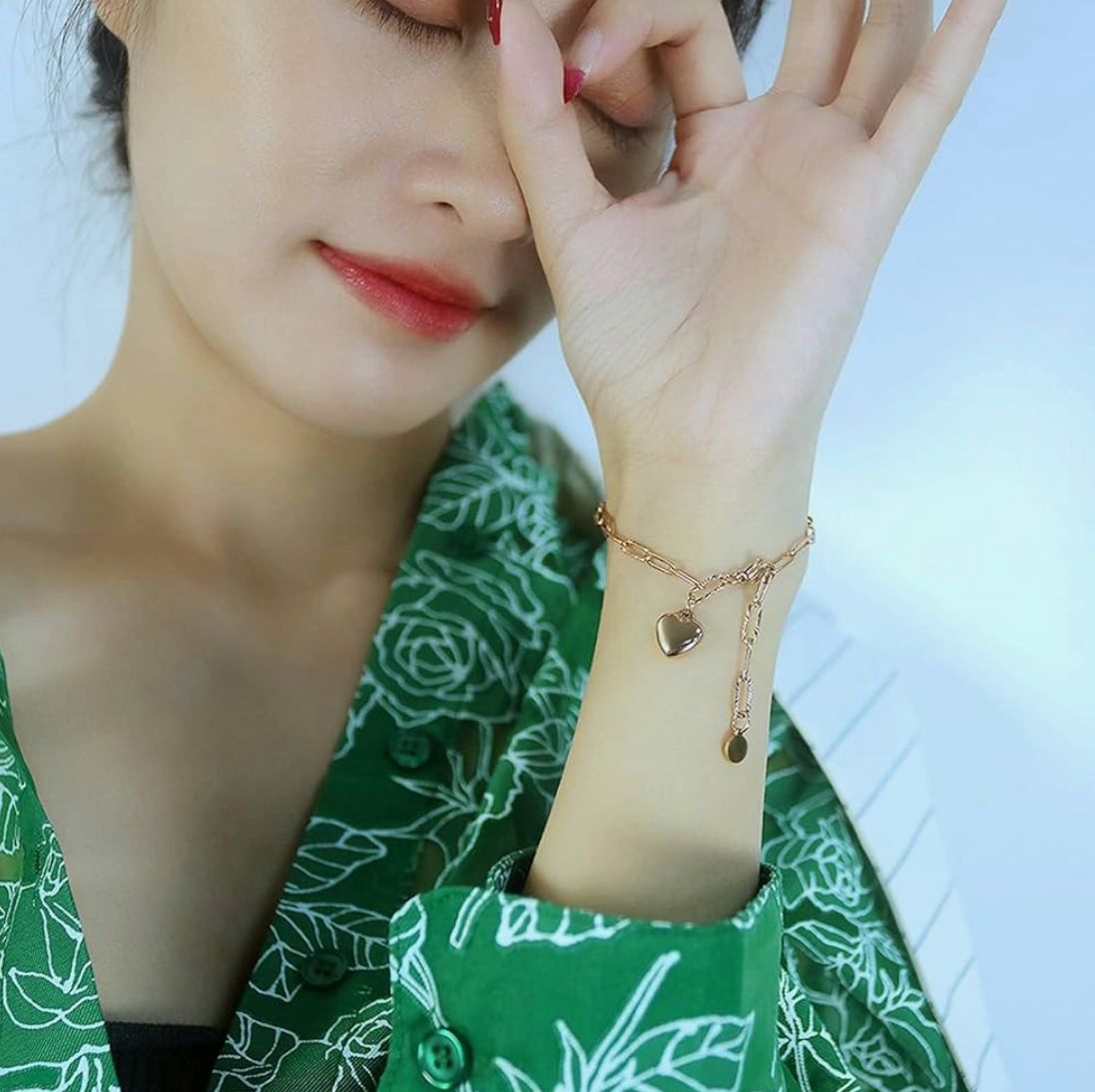 Pulsera charm corazón bold y luneta eslabones rectangulares acero inoxidable regalos mujeres